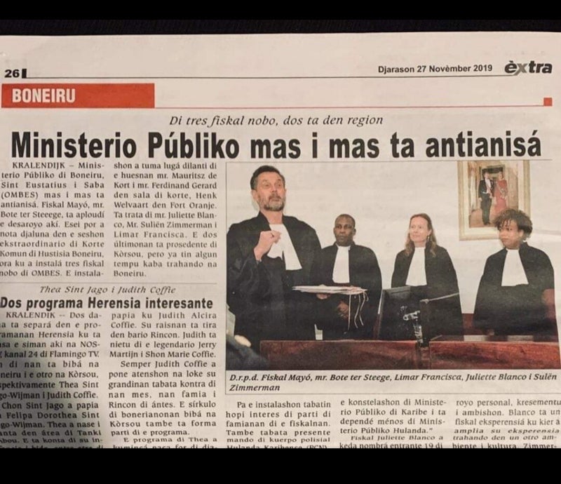 | 2018 - 2019 | Senior kolaborador hurídiko | Ministerio Públiko di Boneiru, St. Eustatius i Saba. Logro nan remarkabel: Maneho di persekushon di infrakshon di Ordenansa di Tráfiko, Ordenansa Kore bou di influensia den tráfiko, Maneho di uso di método nan speshal pa investigashon forènsiko, Maneho di Persekushon di violensia kontra ofishal nan i Maneho di ehekushon di sentensia penal i daño por huiso. |